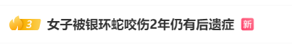 6日,微博话题#女子被银环蛇咬伤2年仍有后遗症#冲上热搜欧洲杯体育,激勉温雅。
